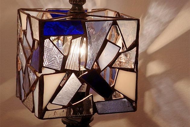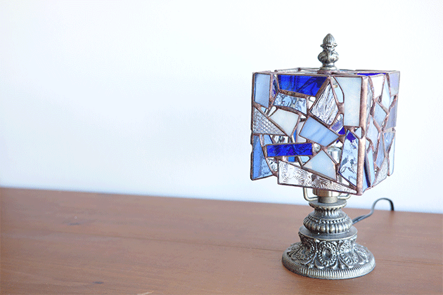 こちらのランプはガラスのかけらを集めて作っているため、すべて1点もののランプとなっています。
